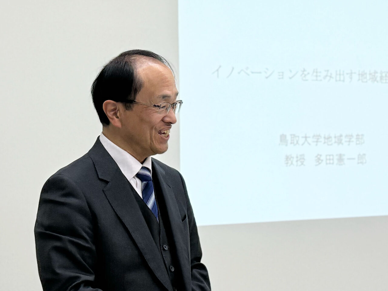 今回は、鳥取大学 地域学部 教授の多田憲一郎氏を講師にお招きし、「イノベーションを生み出す地域経済の条件」をテーマにご講演いただきました。